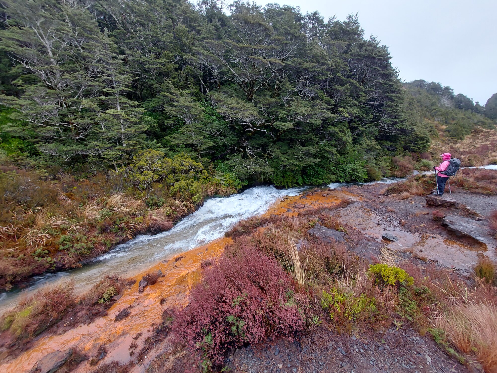 Silica Rapid is a short walk, readily accessible to frontcountry trampers. The supernatural shades of these rapids result from volcanic minerals that abound in Tongariro National Park, Aotearoa’s oldest national park with World Heritage status. We started at Bruce Road with its uphill undulations, knocking off a wintry, exposed section…
